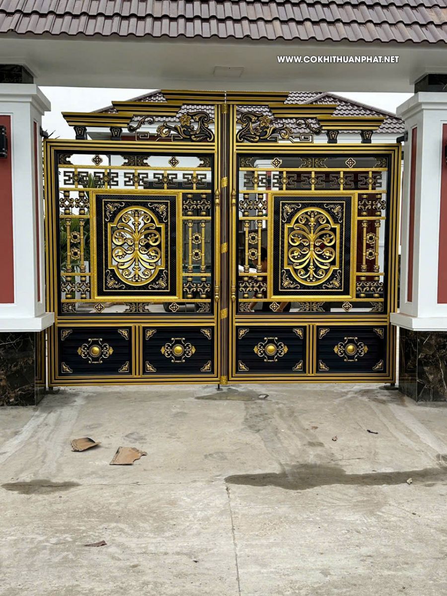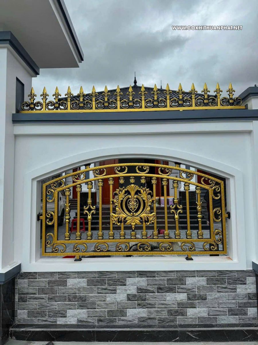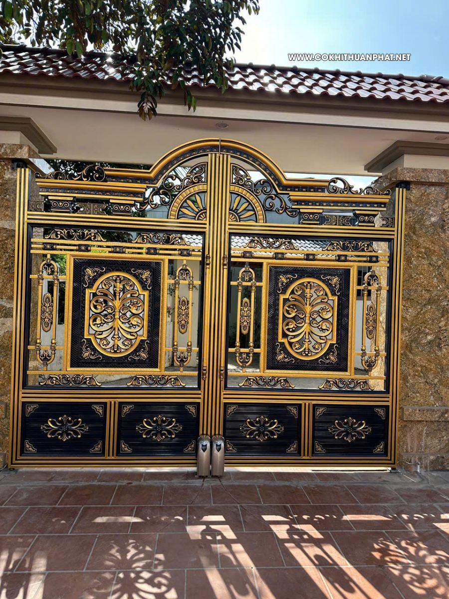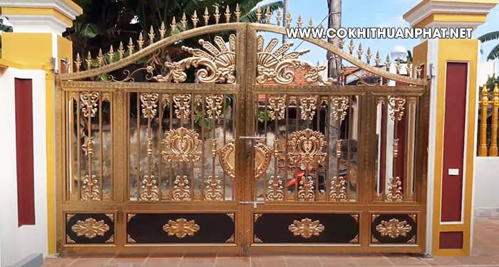 Dòng mẫu cổng inox mạ vàng được nhiều khách hàng ưa chuộng, lựa chọn lắp đặt cho biệt thự nhà sang của mình.